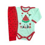 پارچه این ست از نخپنبه باکیفیت و ضد حساسیت انتخاب شده تا مناسب پوست حساس نوزاد باشد و در طول استفاده باعث خارش یا گرمازدگی نشود. طرح شاد و فانتزی هندوانه این ست را به گزینهای عالی برای عکس های یلدایی و لحظههای خاطرهانگیز تبدیل میکند.